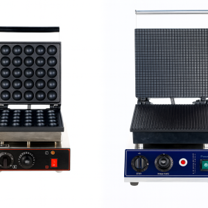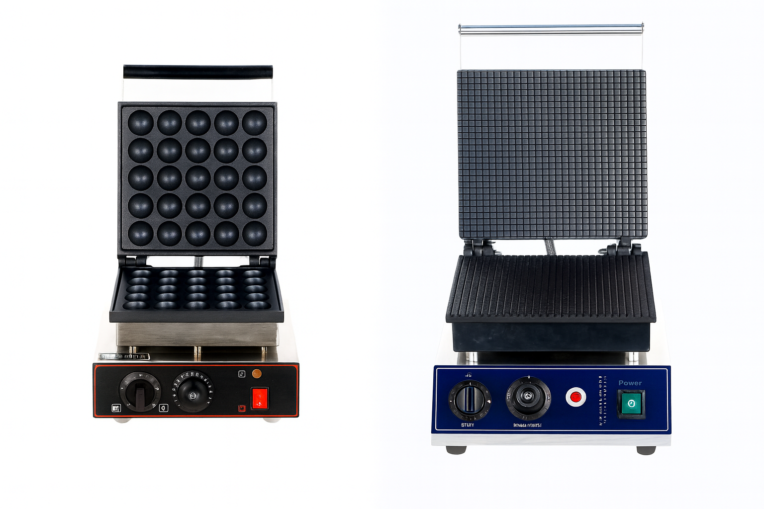 Electric bubble waffle maker with non-stick plates and adjustable temperature control. Produces Hong Kong–style egg waffles, ideal for cafés, dessert shops, and street food vendors.