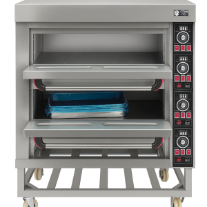 The Firalin MECEB Double Deck Electric Pizza Oven is designed for heavy-duty commercial use, making it ideal for pizzerias, bakeries, and restaurants. With two independent baking chambers, it offers high capacity and flexibility for preparing multiple pizzas or baked goods simultaneously. Each deck features digital temperature controls, durable heating elements for even heat distribution, and insulated stainless-steel construction to maximize efficiency
